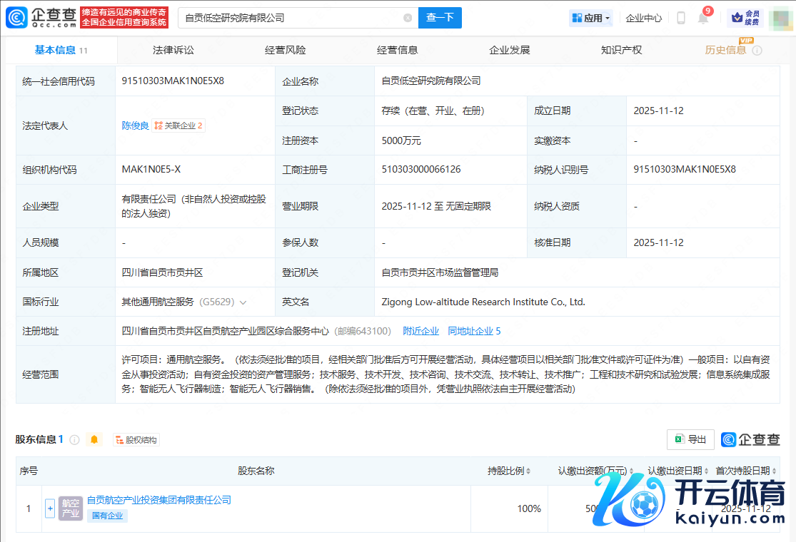 近日,自贡低空揣度院有限公司勾引,法定代表东谈主为陈俊良,注册本钱5000万元东谈主民币,揣测畛域触及通用航空处事、以自有资金从事投资活动、自有资金投资的财富解决处事等。企查查股权穿透领悟,该公司由自贡航空产业投资集团有限包袱公司全资抓股。