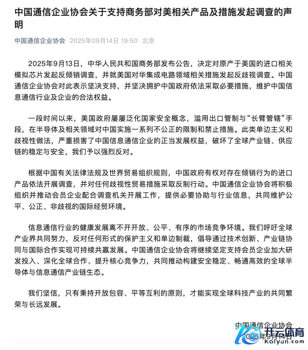 中国通讯企业协会:相沿商务部对好意思有关居品及程序发起看望中国通讯企业协会:相沿商务部对好意思有关居品及程序发起看望