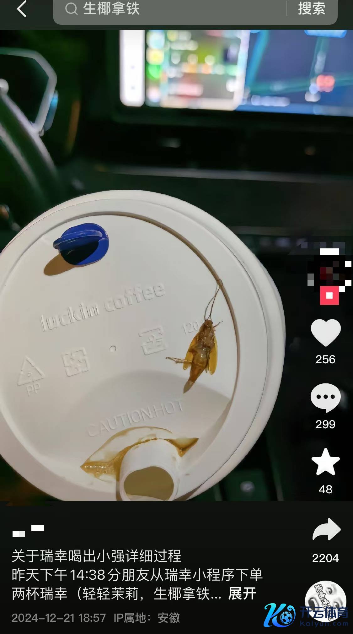 红星老本局12月23日音问,近日开yun体育网,一位安徽销耗者发布视频称,从瑞幸咖啡居品中喝出一只蟑螂。