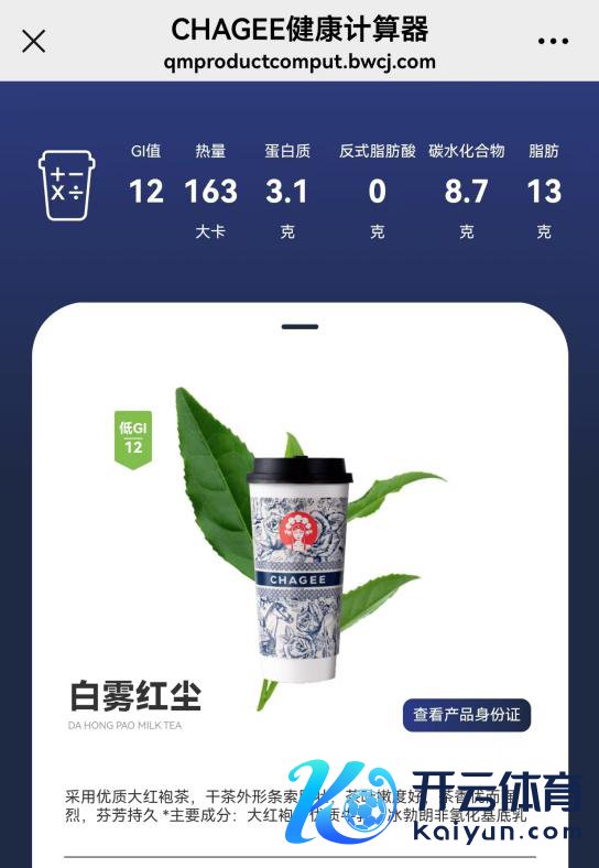 记者在霸王茶姬小设施检察更多居品信息,点击里面的“健康计较器”栏目,销售的奶茶均有具体的养分含量,且王人表明了“0反式脂肪酸”“冰勃朗非氢化基地乳”。除此除外,南京各家门店的外卖点单页面上,奶茶执行也王人写有冰勃朗身分。