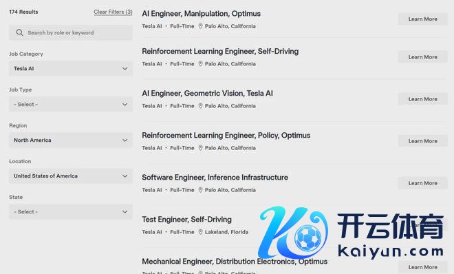 奉陪Optimus Gen 3量产策画的落地,特斯拉开启了该名堂史上最大范围的东谈主才招募,在好意思国加州帕洛阿尔托、弗里蒙特、德州奥斯汀、内华达四大基地,怒放超100个专项岗亭,掩饰AI算法、机械硬件、软件系统、制造工程、数据与供应链全链条,其中AI与坐褥工程类岗亭占比超50%。
